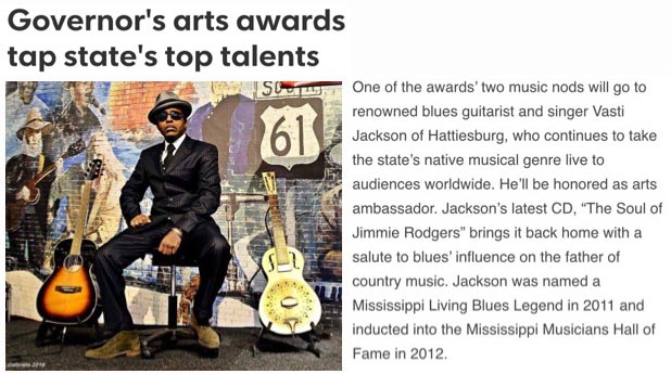 Vasti Jackson received his first Grammy nomination under his own name for his CD "The Soul Of Jimmy Rodgers." The album will be competing in the traditional blues category. Jackson is “honored” to have received the nomination but is also surprised the record came out on his own label, he hasn’t toured behind it, and did not have a publicist. It’s not his first experience with the Grammys, though, having appeared on B.B. King’s Grammy-winning “Blues Summit” in 1994 and co-produced Bobby Rush’s Grammy-nominated 2001 album “Hoochie Man.”